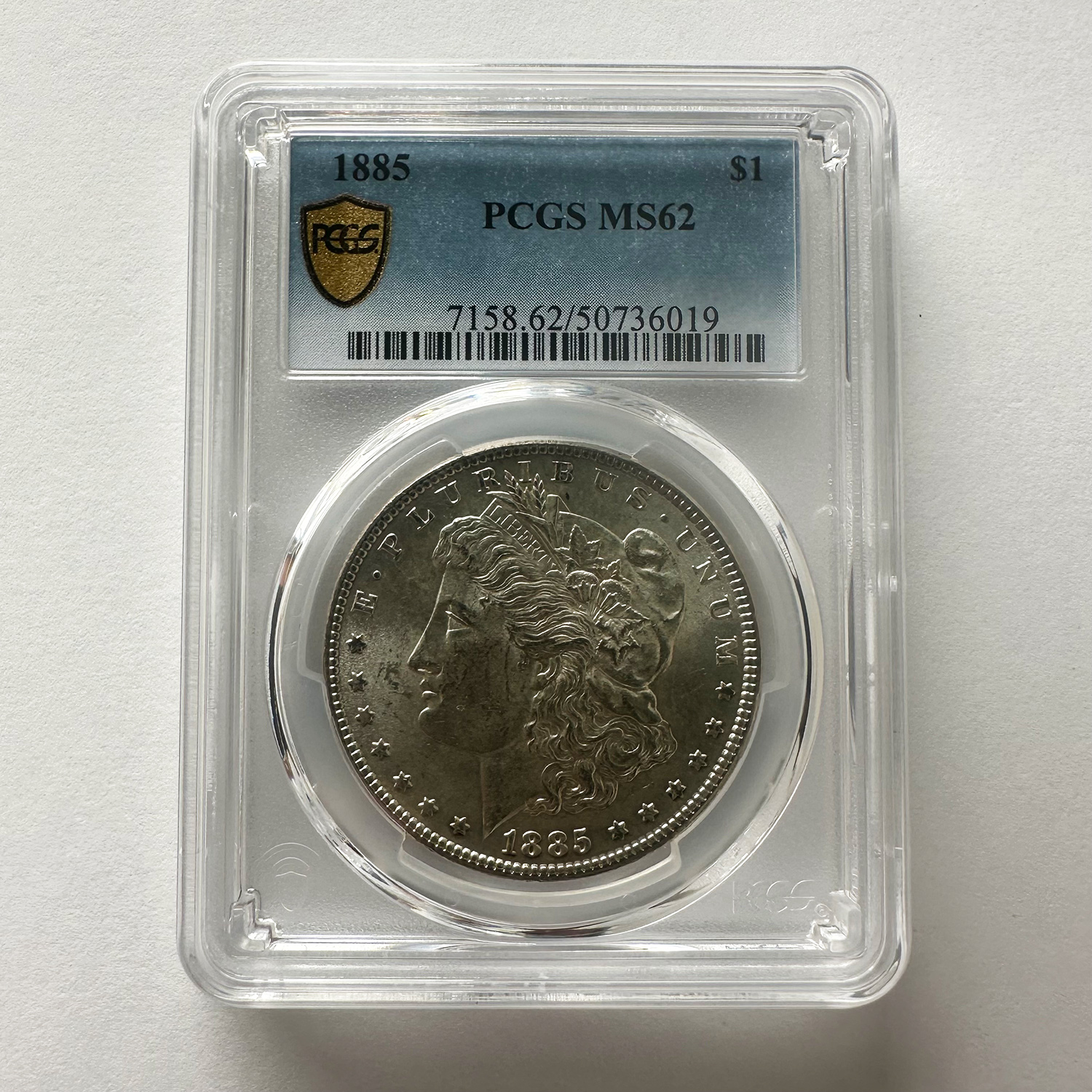 1885年に発行されたモルガンダラー銀貨は、アメリカを代表する大型1ドル銀貨の中でも人気の高い一枚です。